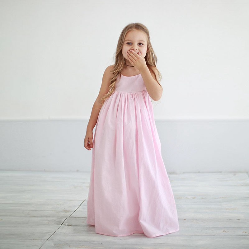 女童连衣裙夏季新款浪漫女童沙滩吊带纯棉裙子度假风洋气大牌长裙