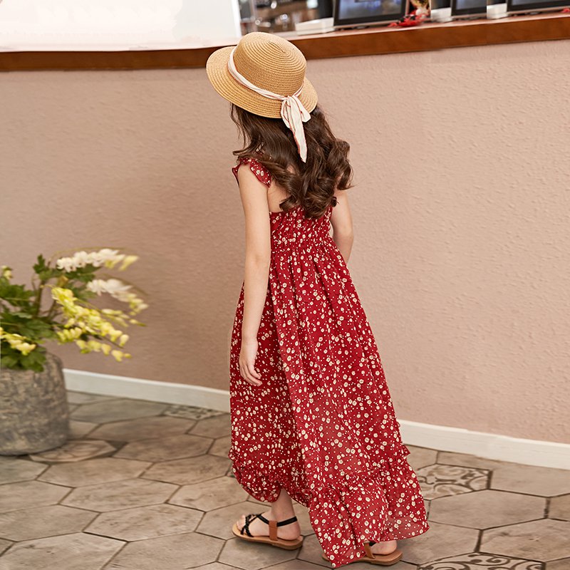 2024年夏季女童吊带沙滩长裙中大童碎花连衣裙品质亲子装过膝裙子