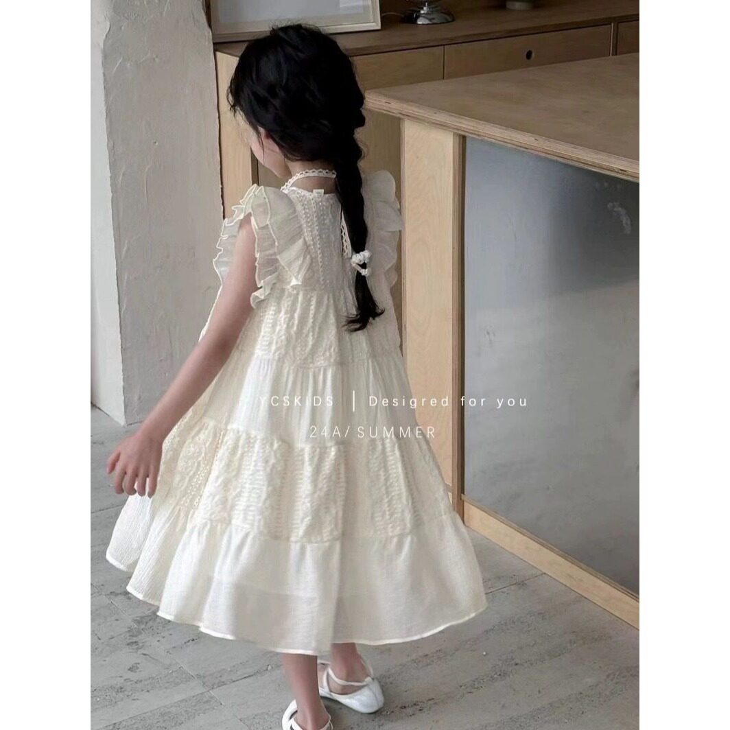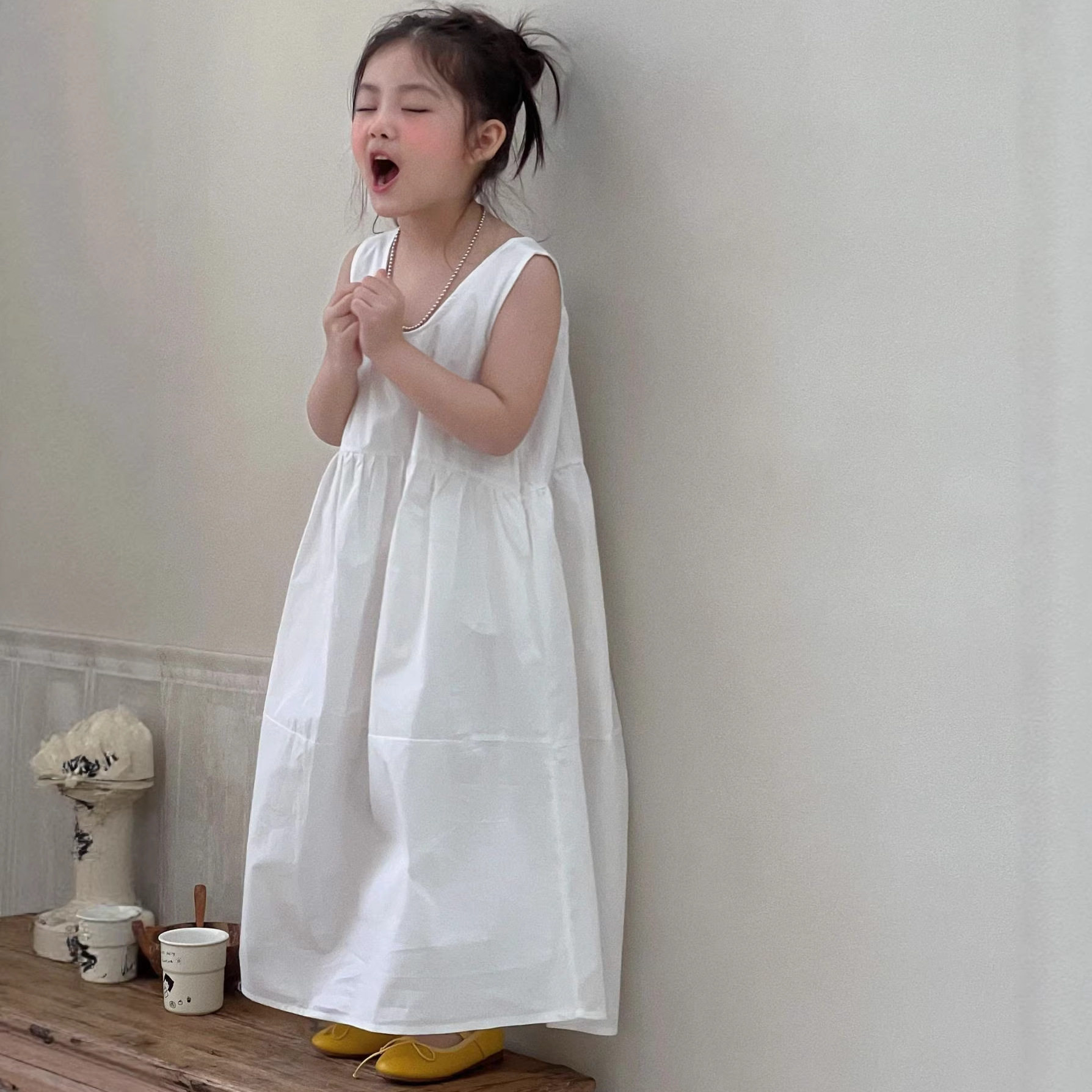 TOTObaby夏季女童沙滩长裙26新款儿童松弛感简约背心裙白色连衣裙