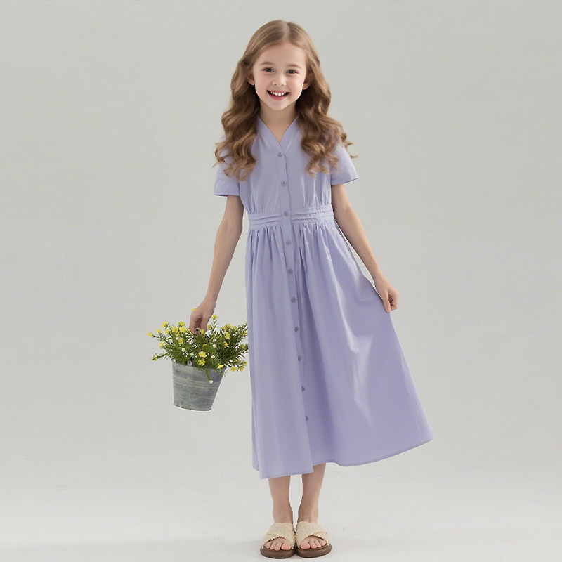 紫色纯棉连衣裙女童薄款棉质沙滩度假裙子中大童学生polo长裙旅游