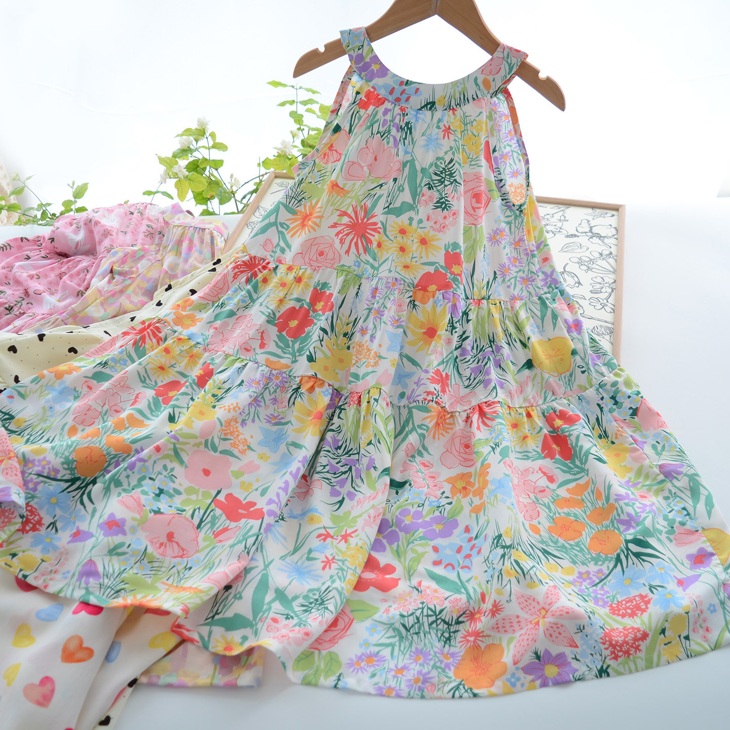 女童夏天衣服碎花公主裙人造棉亲肤度假穿洋气中长裙甜美风沙滩裙