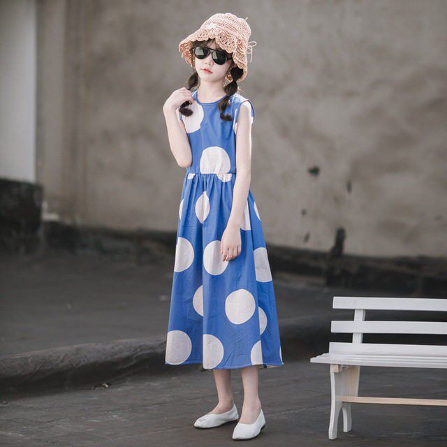 女童连衣裙夏装蓝色大摆长裙中大童百搭背心裙女孩裙子儿童沙滩裙