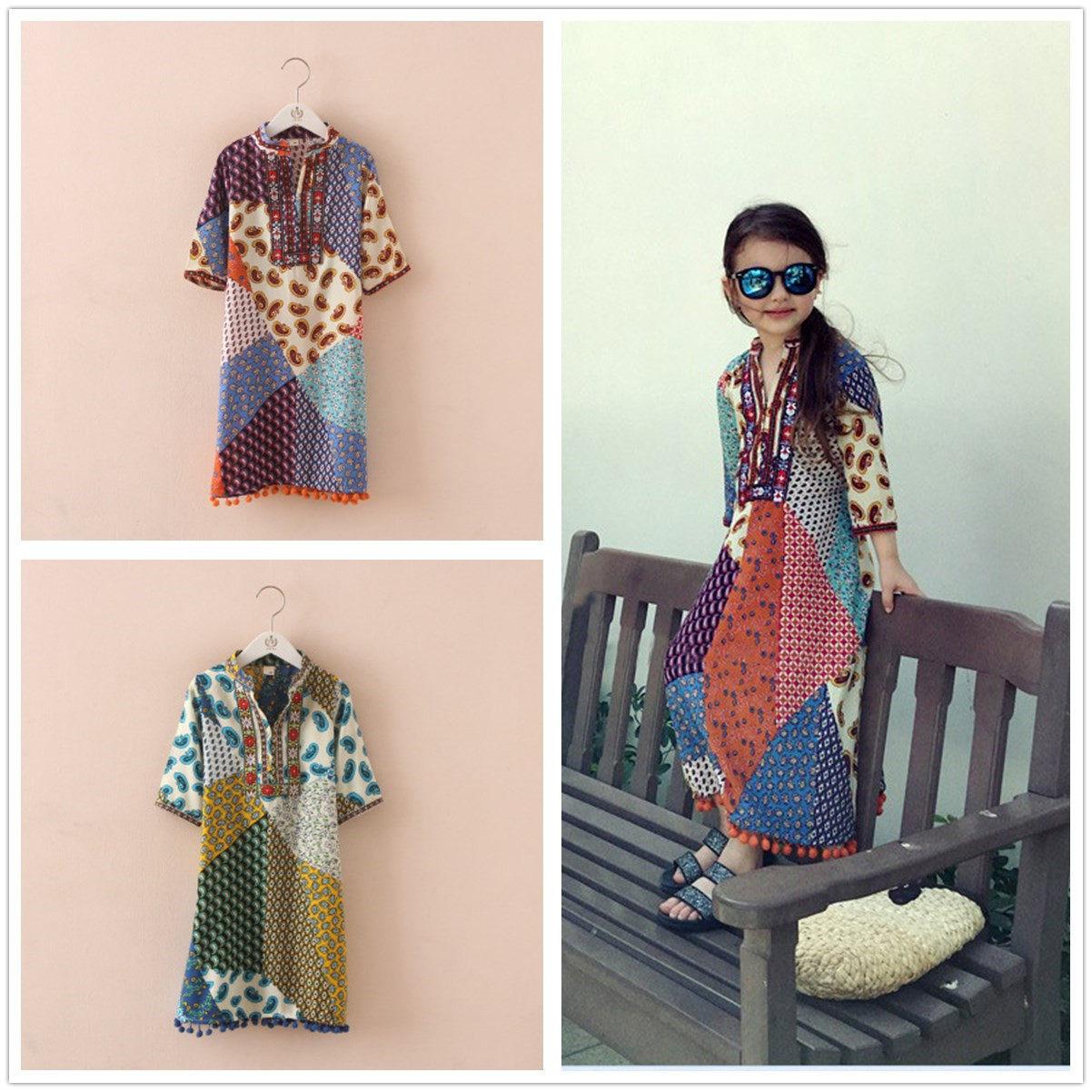 女童夏装连衣裙儿童印花沙滩裙过膝长裙夏季小女孩巴厘岛度假裙子