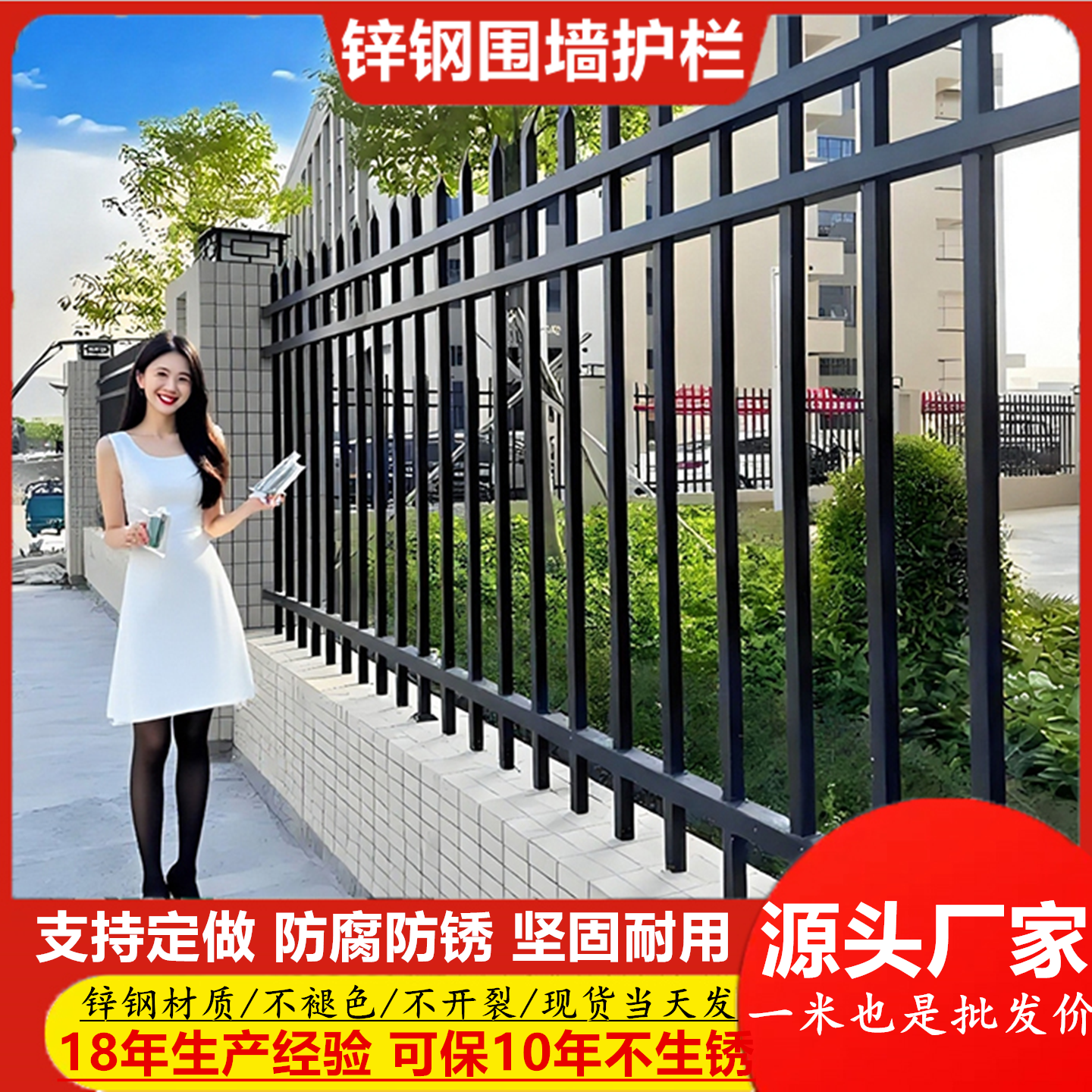 锌钢护栏学校围栏家用围栏围墙小区院子别墅工地围栏防护围墙护栏