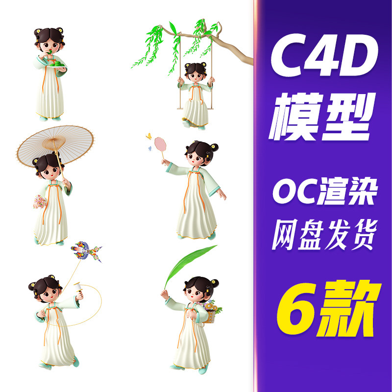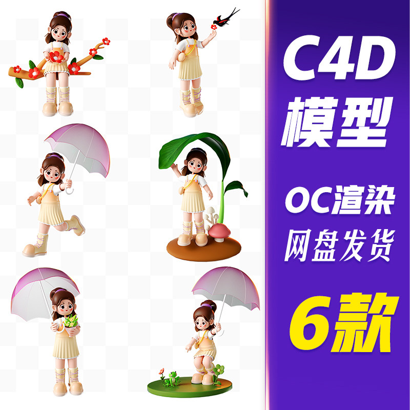 儒愿HB5C4D模型OC渲染3D立体春季节气卡通可爱人物套图