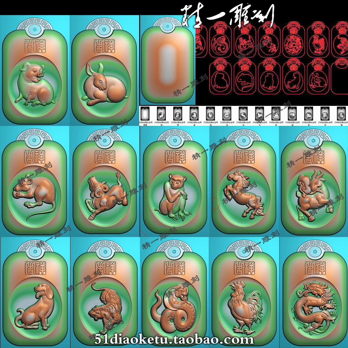 jdp格式精雕图1330回纹牌头12生肖一套图补平安牌子玉雕bmp灰度图