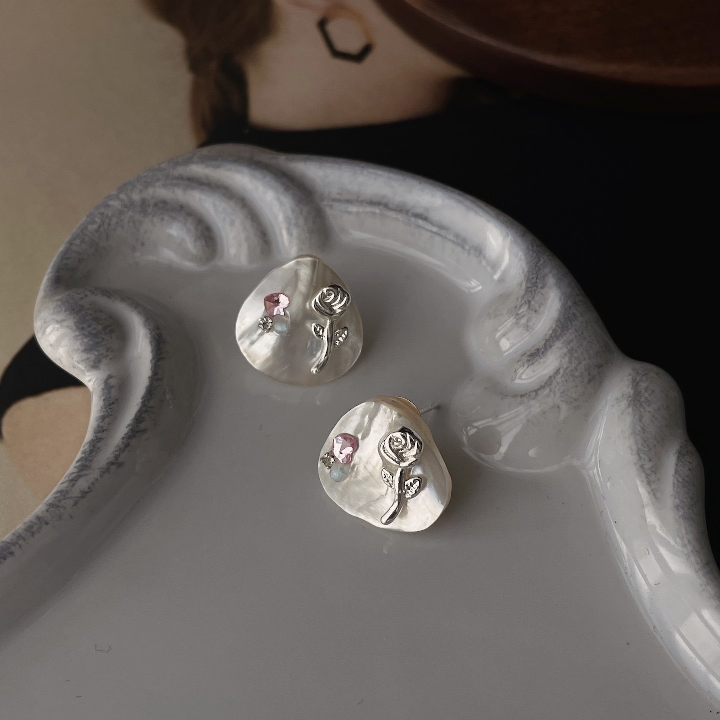 上新9折 小王子的玫瑰花耳环天然贝壳三角形女小众设计时尚耳饰