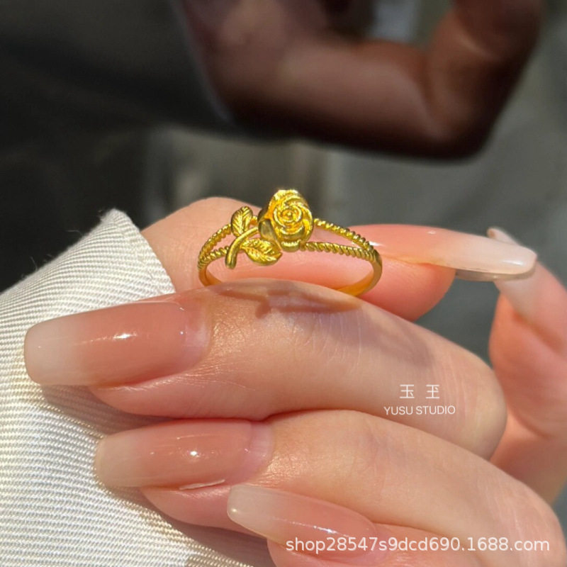 黄金色沙金小王子的玫瑰花戒指女款仲夏夜玫瑰可调节文艺复古指环