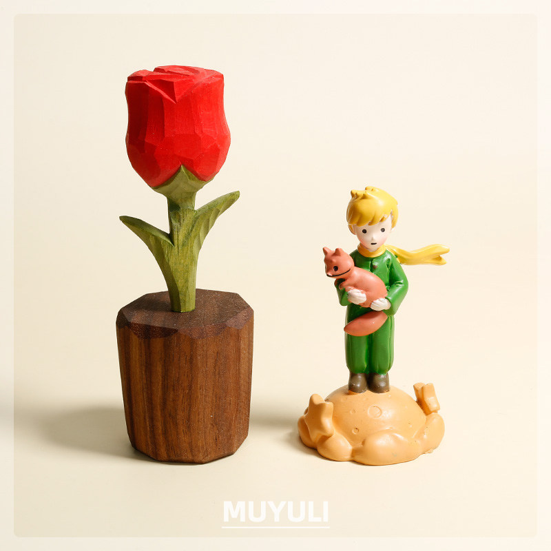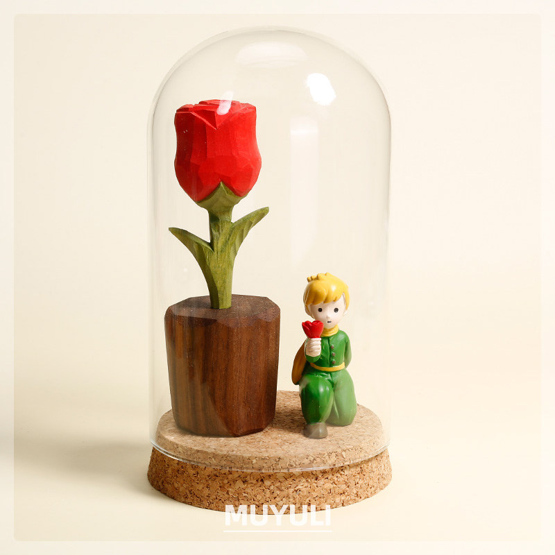 小王子的玫瑰花永生花手工木雕桌面摆件电脑办公桌装饰母亲节礼物