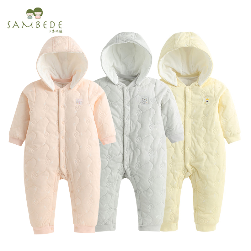 三木比迪婴儿连身衣男女宝宝夹棉加连体棉服2024冬睡衣爬服A类