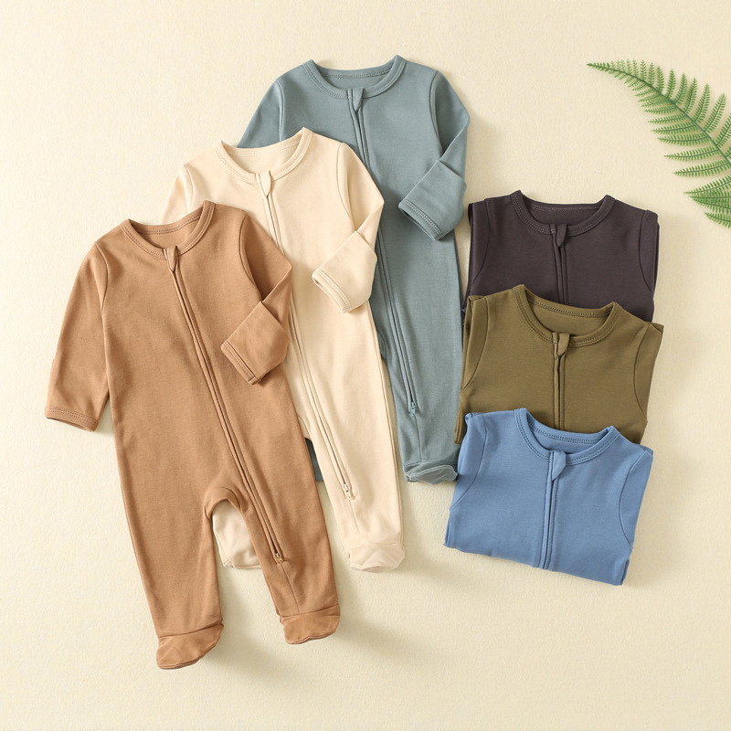 新生婴儿长袖春秋新款纯色长爬连身衣纯棉男女宝宝哈衣外穿连体衣