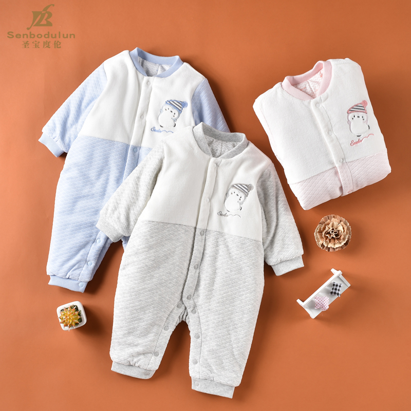 婴儿秋冬衣服宝宝纯棉连体衣150g哈衣夹棉加厚婴儿连身衣加厚棉衣