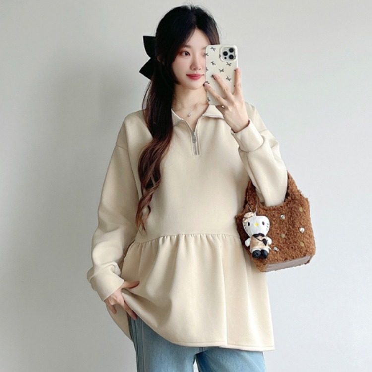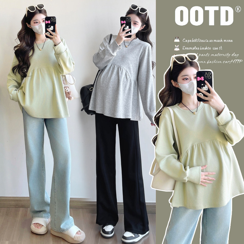 孕妇装春装简约百搭长袖翻领上衣2025新款孕妇卫衣宽松大码娃娃衫
