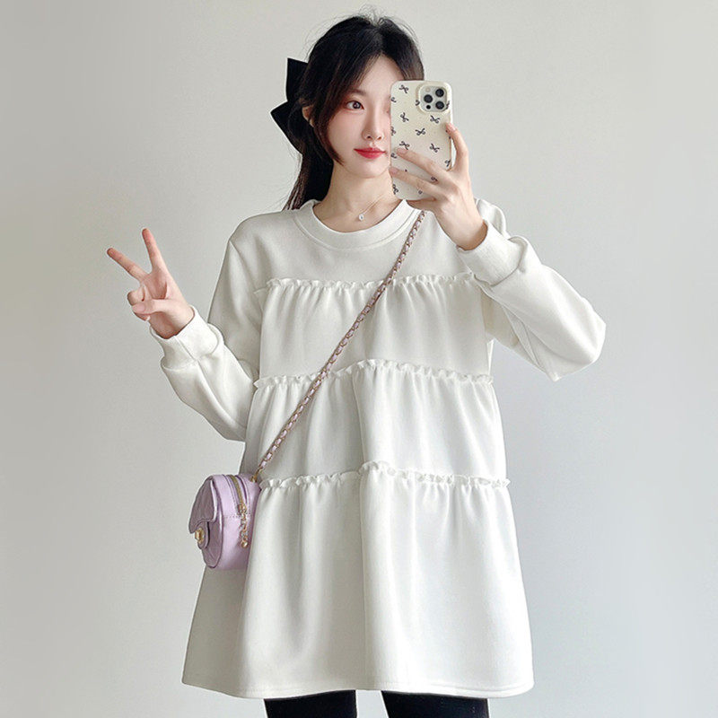 孕妇装春装长袖百褶衬衫连衣裙宽松大码休闲裙子春季简约孕妇裙春