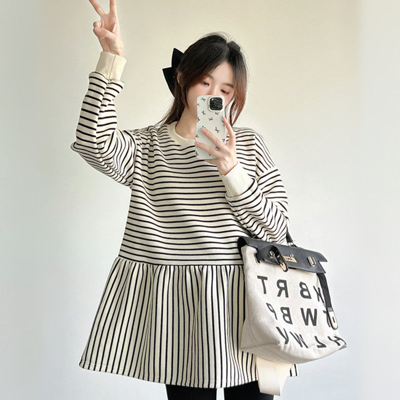 孕妇装春装设计感长袖条纹上衣宽松大码休闲娃娃衫春季怀孕卫衣春