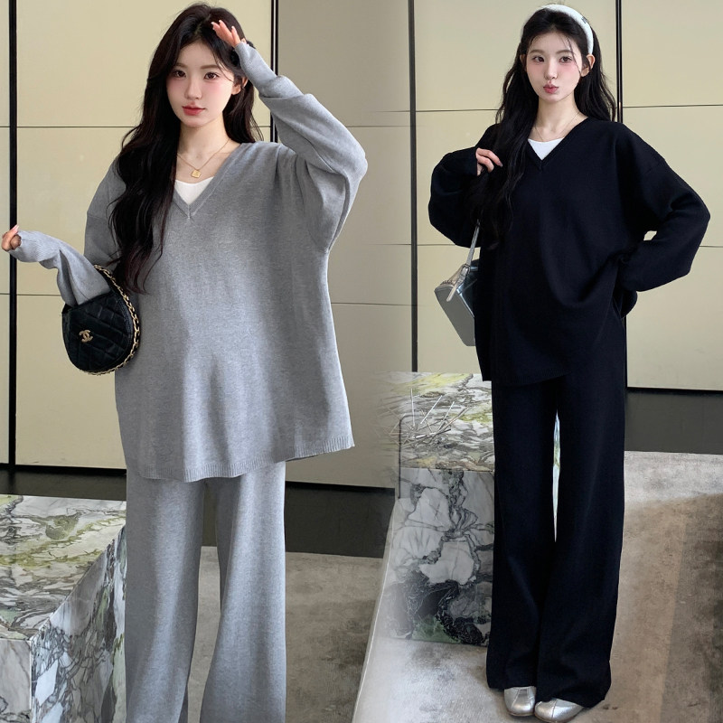 孕妇装春装长袖上衣春季休闲裤时尚简约百搭两件套春秋孕妇套装春