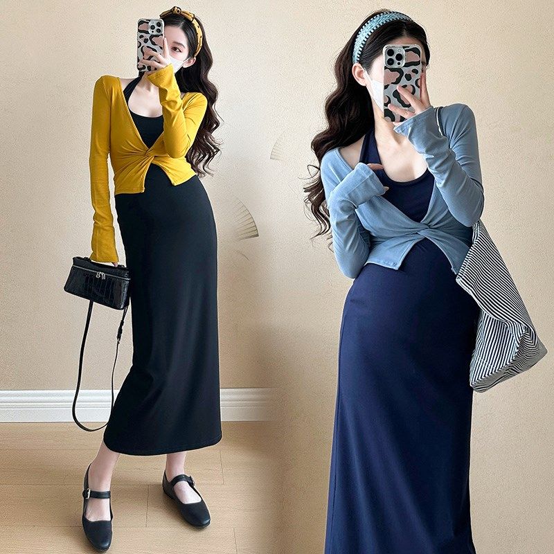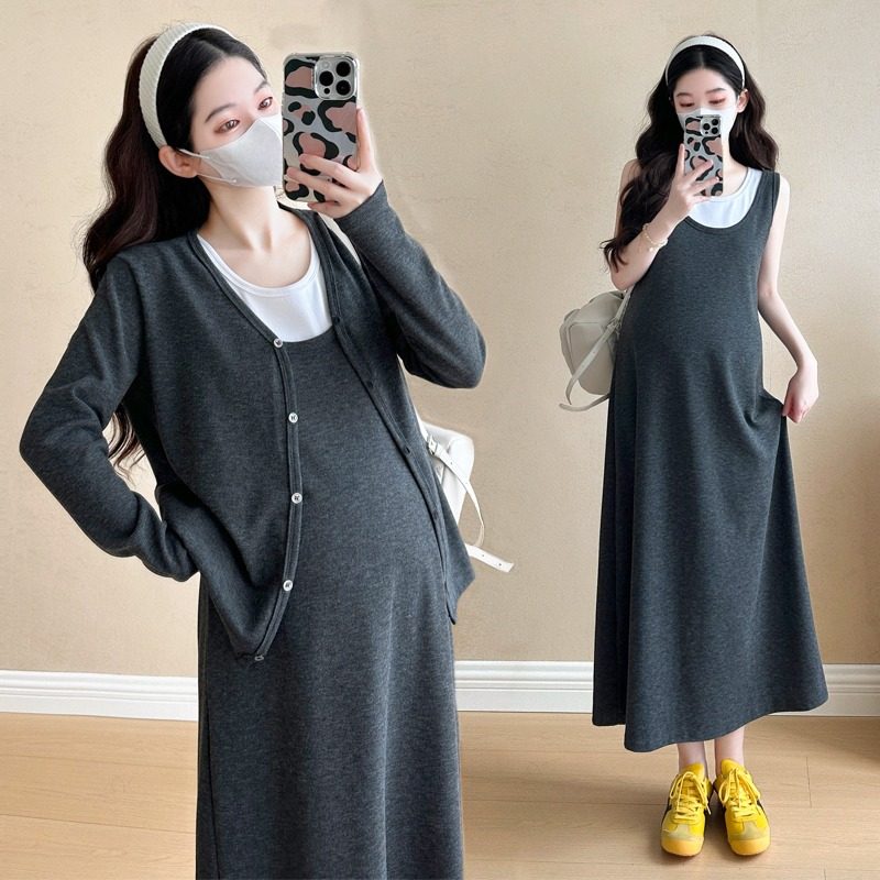 孕妇装春装长袖开衫上衣春季吊带裙2025新款孕妇连衣裙套装裙子春