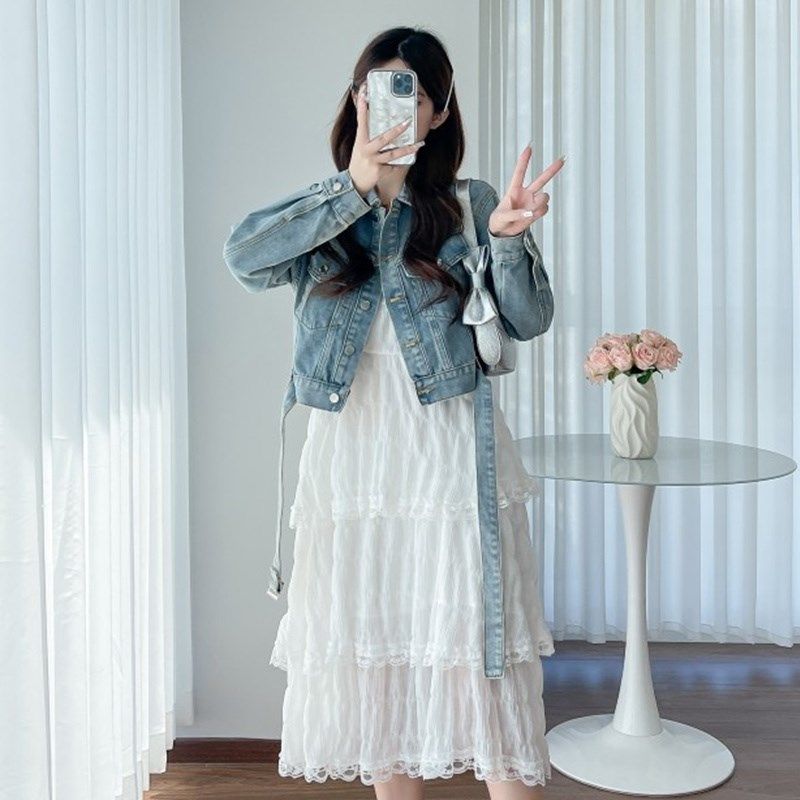 孕妇装春装长袖牛仔外套春季吊带裙春秋两件套连衣裙孕妇套装裙子
