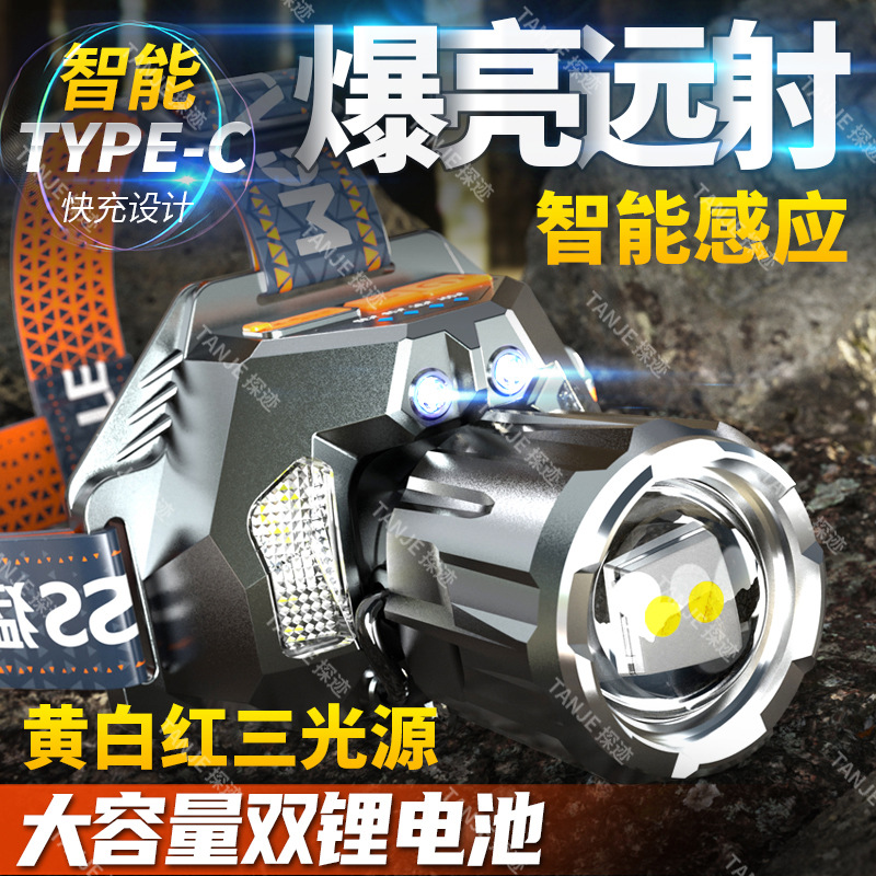 头灯野外强光超亮充电长续航头戴式手电筒新型感应户外夜钓鱼专用