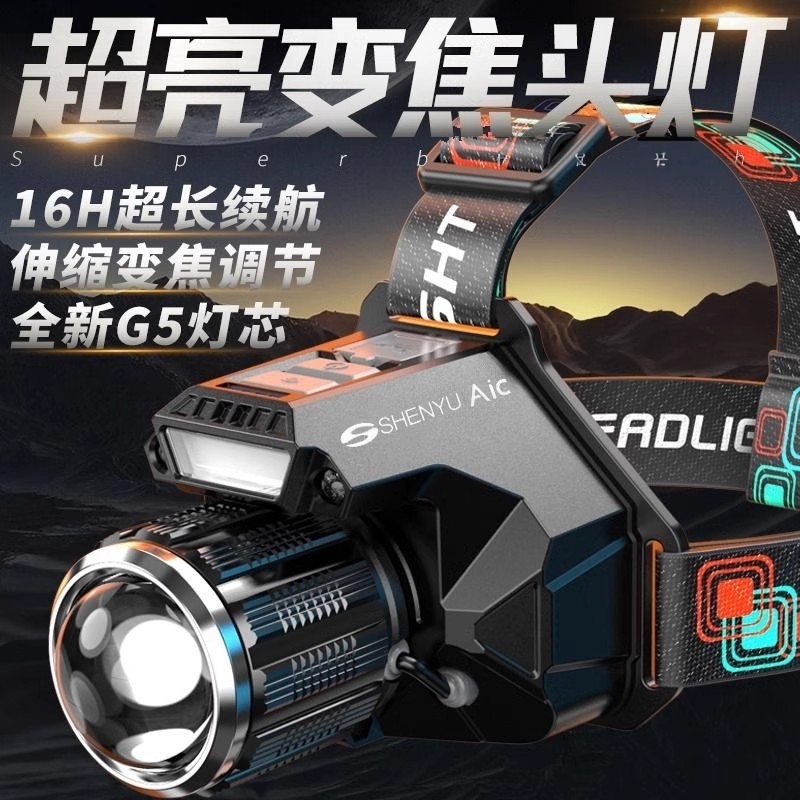 头灯强光充电超亮超长续航感应变焦户外头戴式手电筒夜钓疝气矿灯