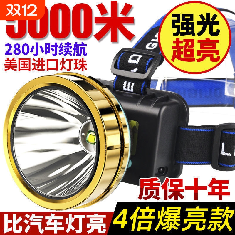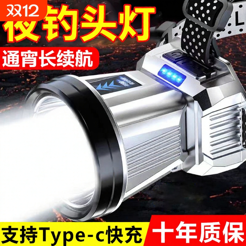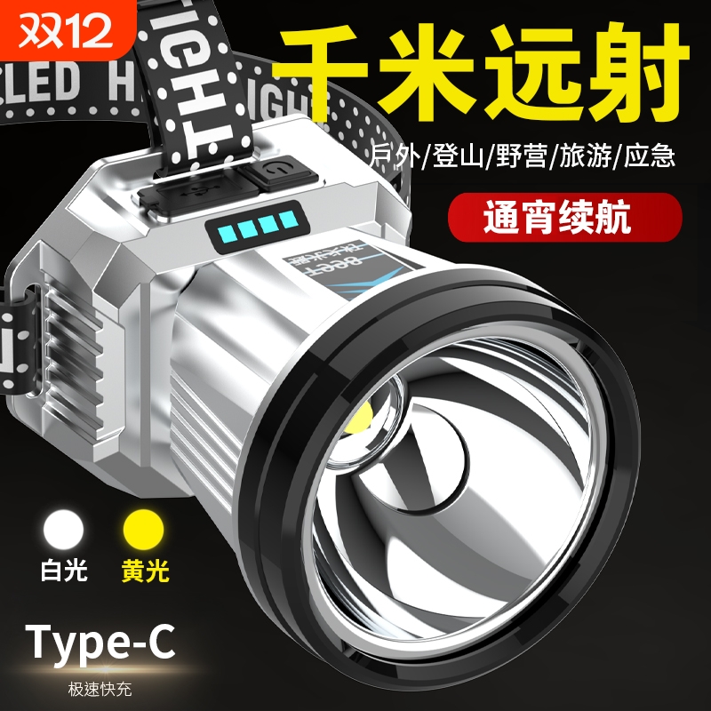 头戴式强光头灯手电筒超亮远射LED可充电防水矿灯超长续航钓鱼灯