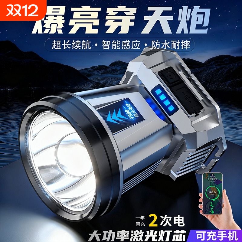 头灯2025新款强光超亮充电头戴式户外登山野外手电筒激光照明灯