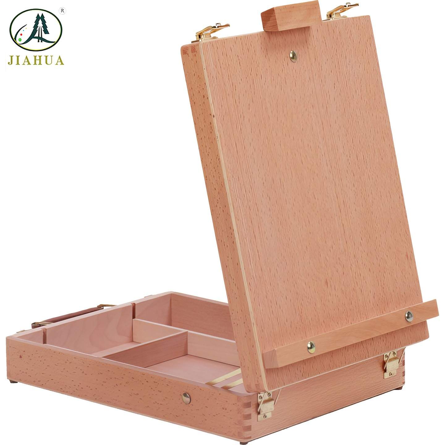 桌面画架抽d屉式桌上油画架 木制便携手提画箱油画箱台式素描画架