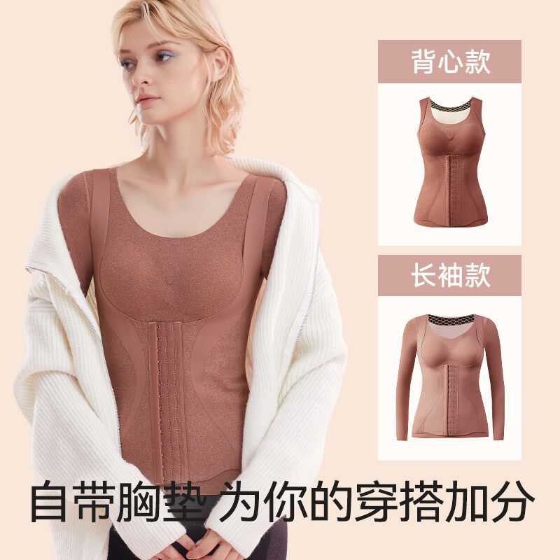 美体塑身衣磨毛保暖收腹塑形束腰文胸背心一体内衣女束身上衣显瘦