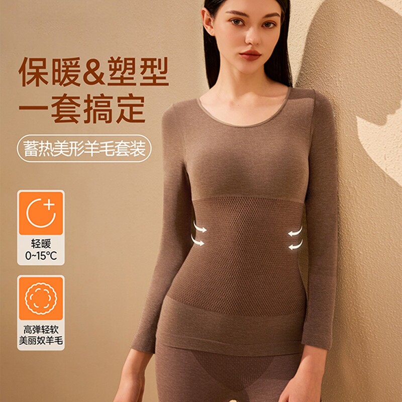 保暖内衣女塑身美体羊毛套装无痕修身显瘦内搭打底秋冬季秋衣秋裤