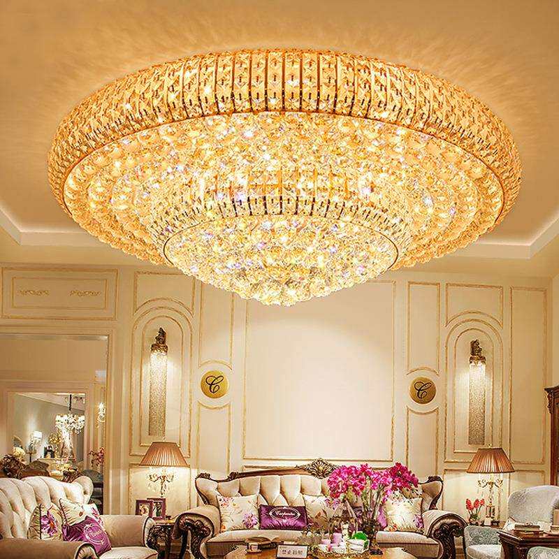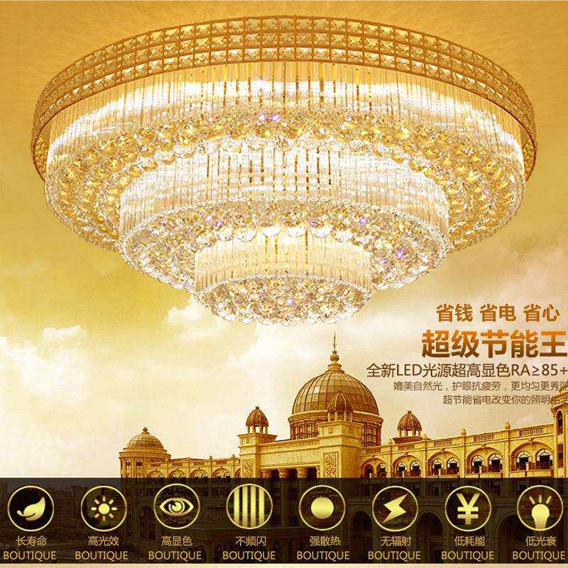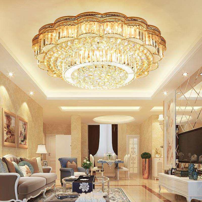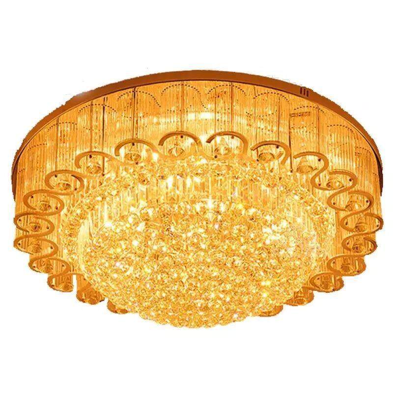 金色水晶灯圆形客厅灯led吸顶灯现代简约卧室灯欧式大厅灯具大气