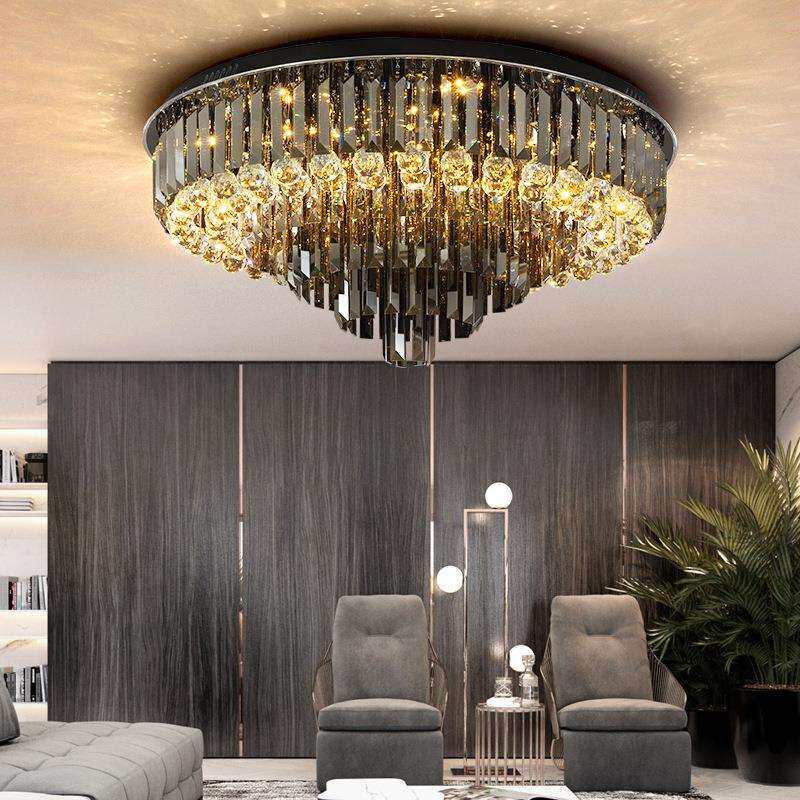 圆形轻奢客厅灯具简约现代中古风水晶吸顶灯主卧室灯书房餐厅灯饰