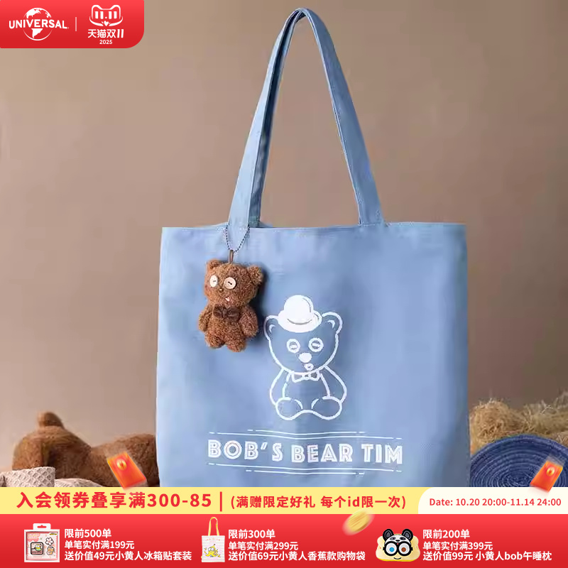 环球影业小黄人TIM熊治愈系氧气蓝单肩包包挂大容量通勤牛仔包