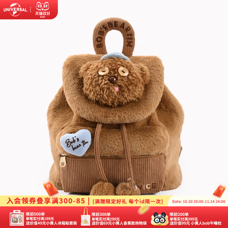 环球影业小黄人TIM熊冬日萌语毛绒双肩包卡通背包大容量出行包