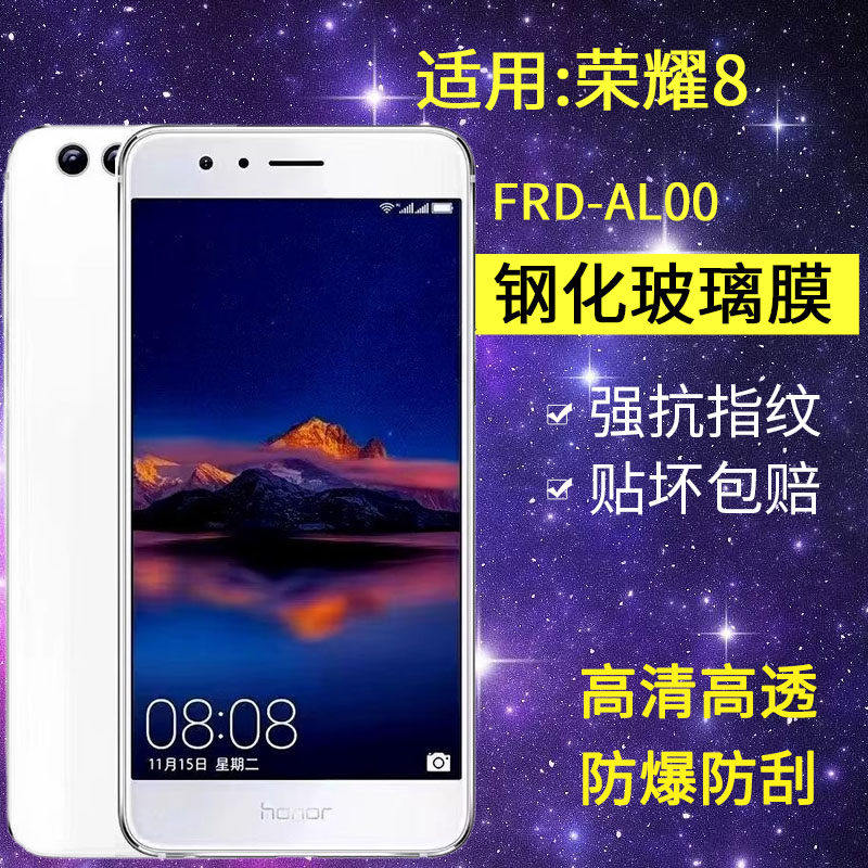适用华为FRD-AL00钢化膜荣耀8手机膜全屏frd一al10防爆抗蓝光honor8玻璃aloo保护frddl00贴膜