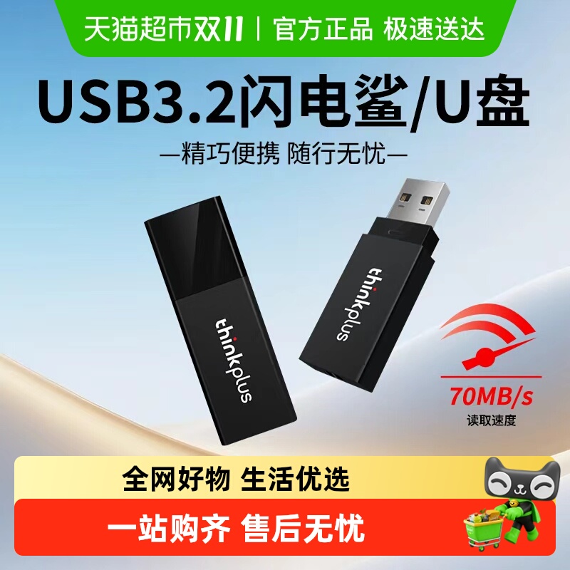 联想thinkplus 电脑U盘64G金属高速优盘USB3.0车载通用32/128/256