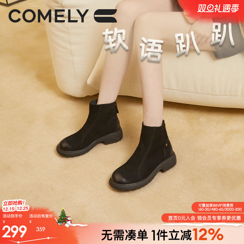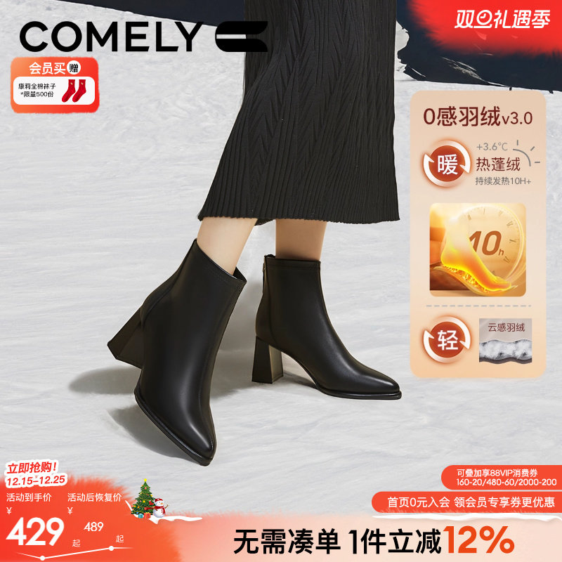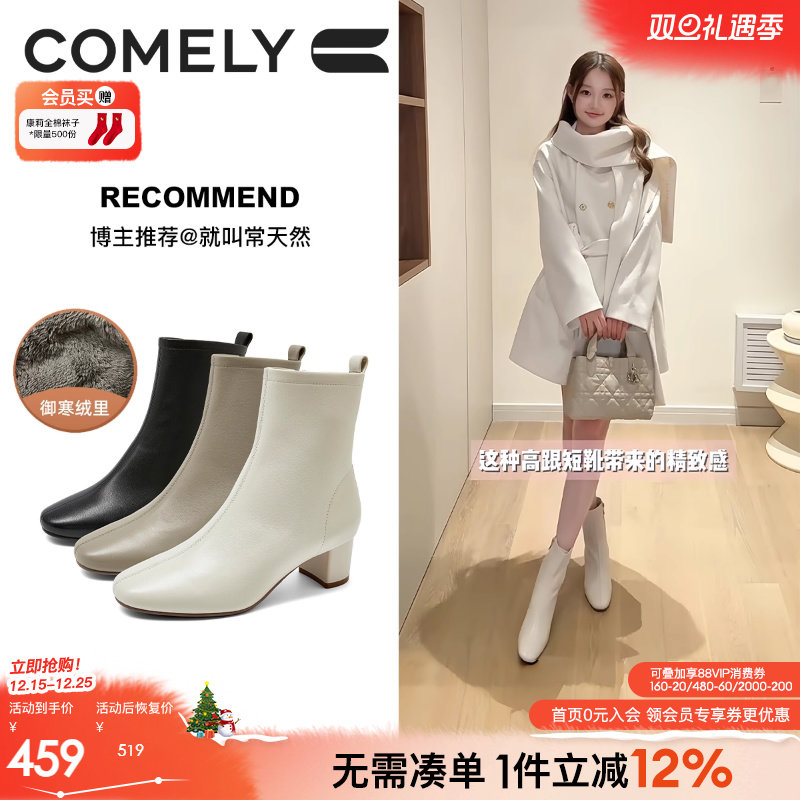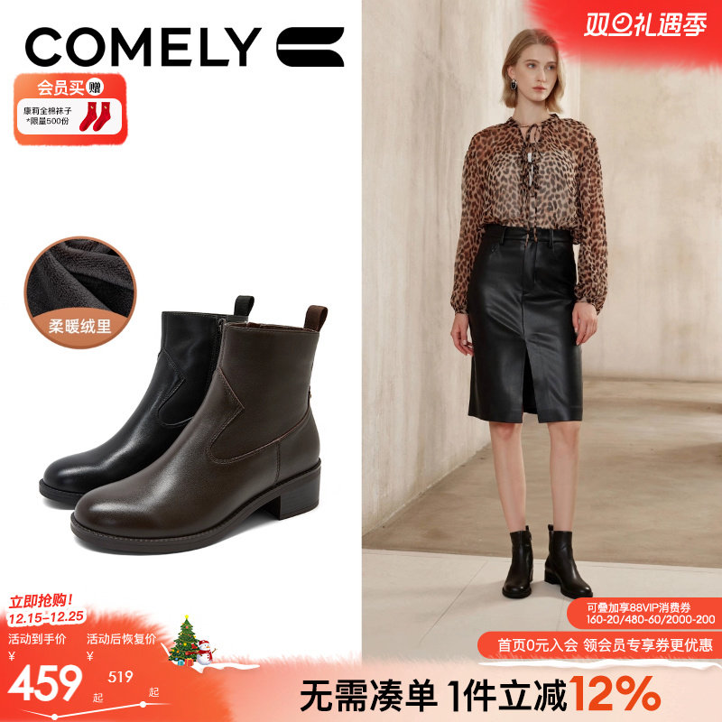 康莉羊皮瘦瘦靴女显高冬季新款真皮粗跟时尚休闲时装靴短靴女靴子