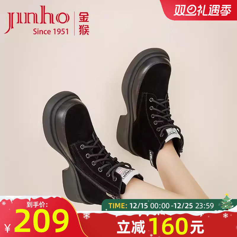 fed粗跟短靴冬季新款女靴时装靴真皮运动靴加绒马丁靴女款YAB160