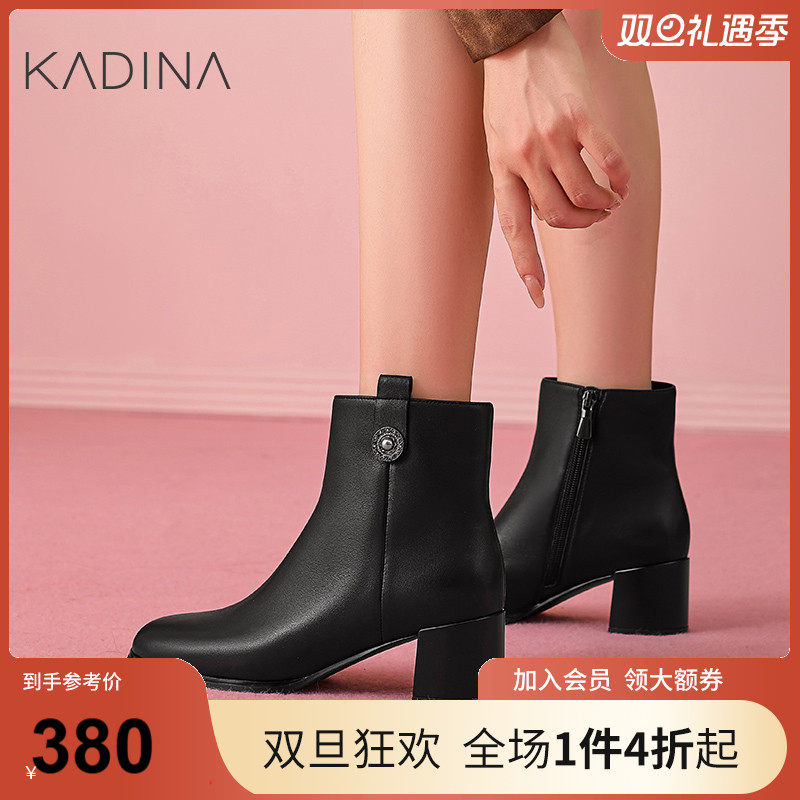 卡迪娜2025冬季新款真皮粗跟短靴时装靴女靴巨好看的靴子KA241559