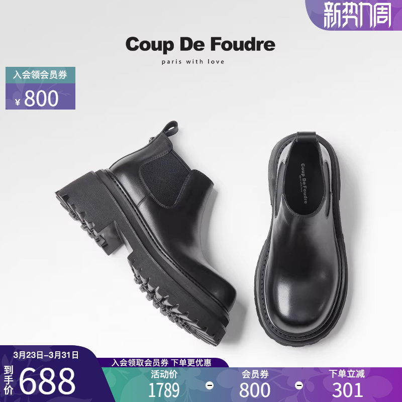 CDF女鞋轻奢秋冬季新款潮流百搭烟筒靴英伦风真皮简约粗跟女靴子