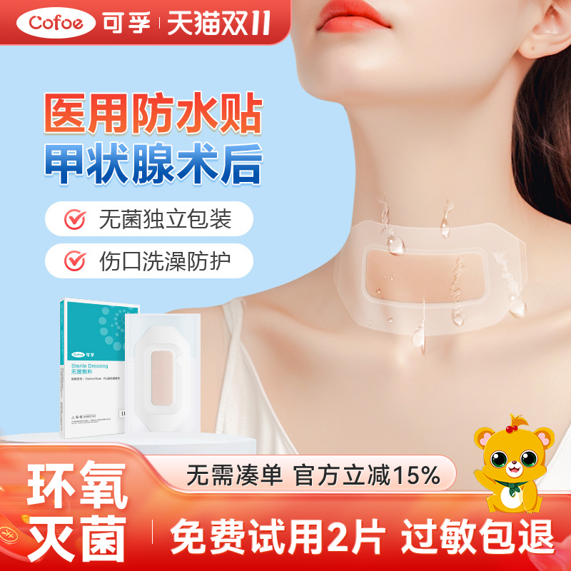 可孚医用甲状腺术后伤口防水贴洗澡贴脖子保护大号创可贴无菌敷贴
