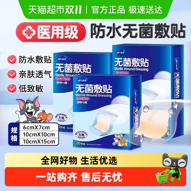 海氏海诺伤口防水贴医用无菌敷料贴大号创可贴洗澡专用游泳私密贴