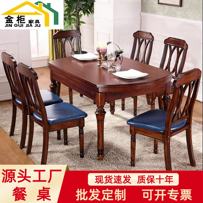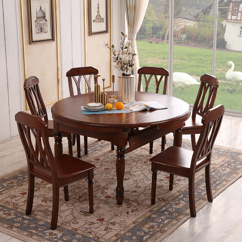 - 全实木餐桌椅组合 可伸缩