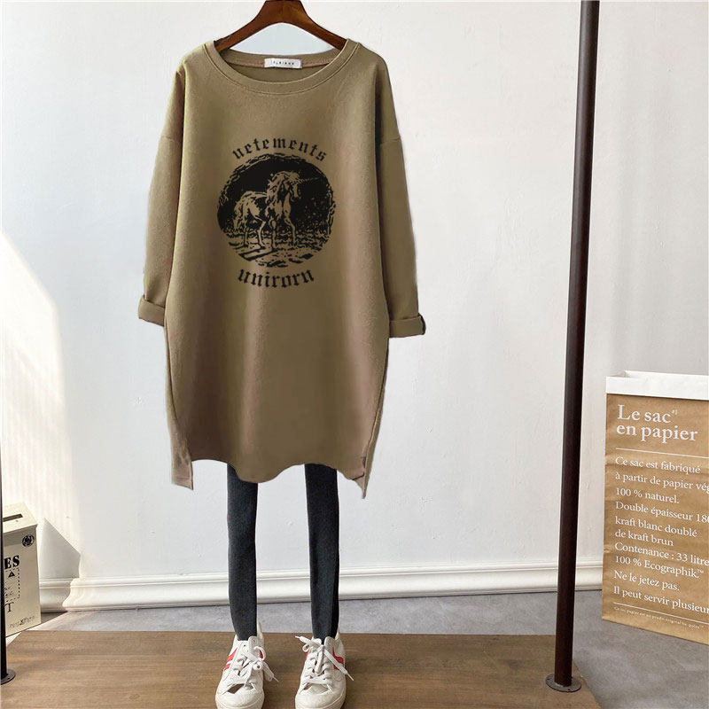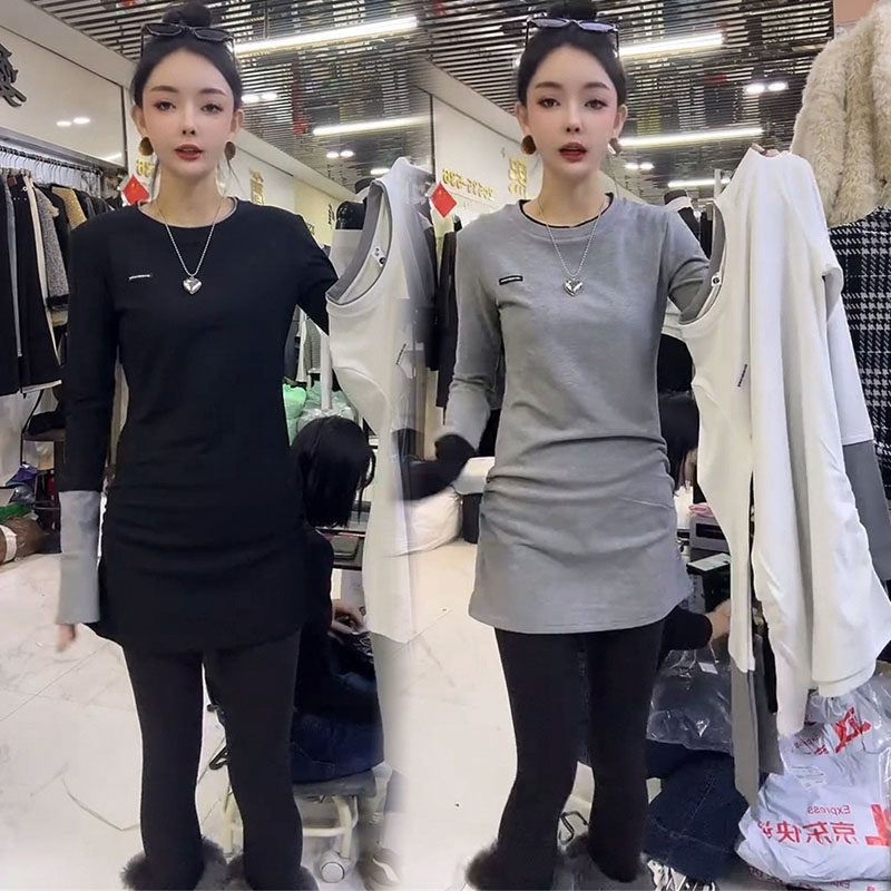 - 长袖 t恤 女 宽松 中长款 打底衫