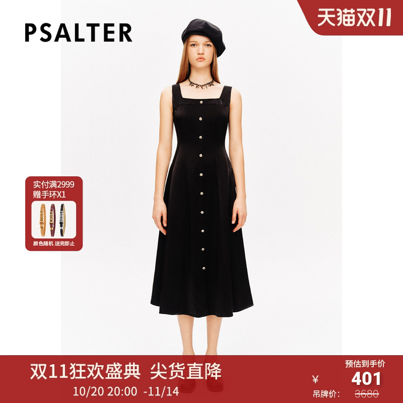 西装料 高级感赫本风小黑裙方领高腰显瘦气质收腰无袖吊带连衣裙