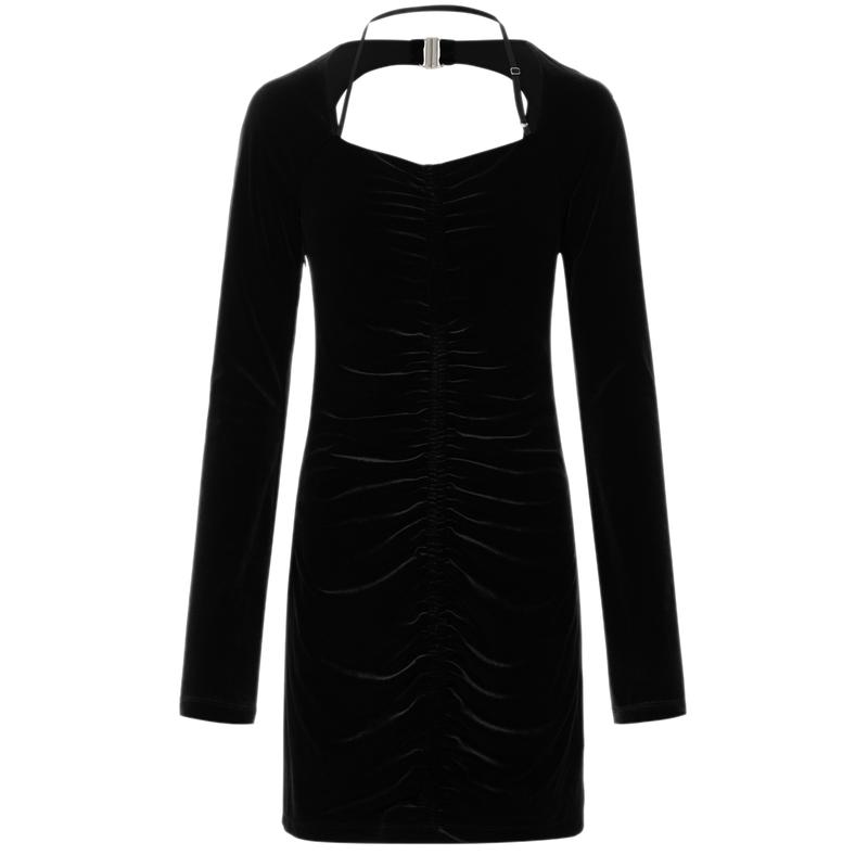 【明星同款】珂莱蒂尔2025秋新高腰丝绒小黑裙连衣裙无袖明星同款