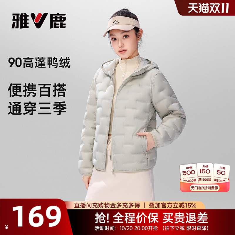 雅鹿轻薄羽绒服女款2025秋冬新款休闲时尚百搭连帽保暖薄款外套女
