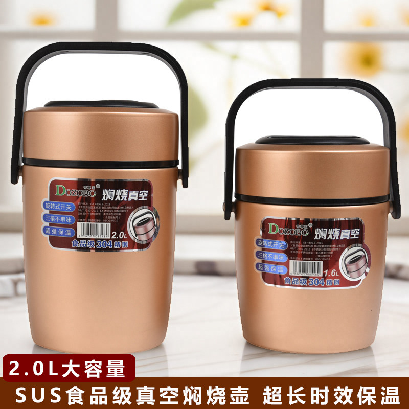 大容量保温饭盒真空焖烧壶304不锈钢提锅三层焖煮壶超保温带饭壶