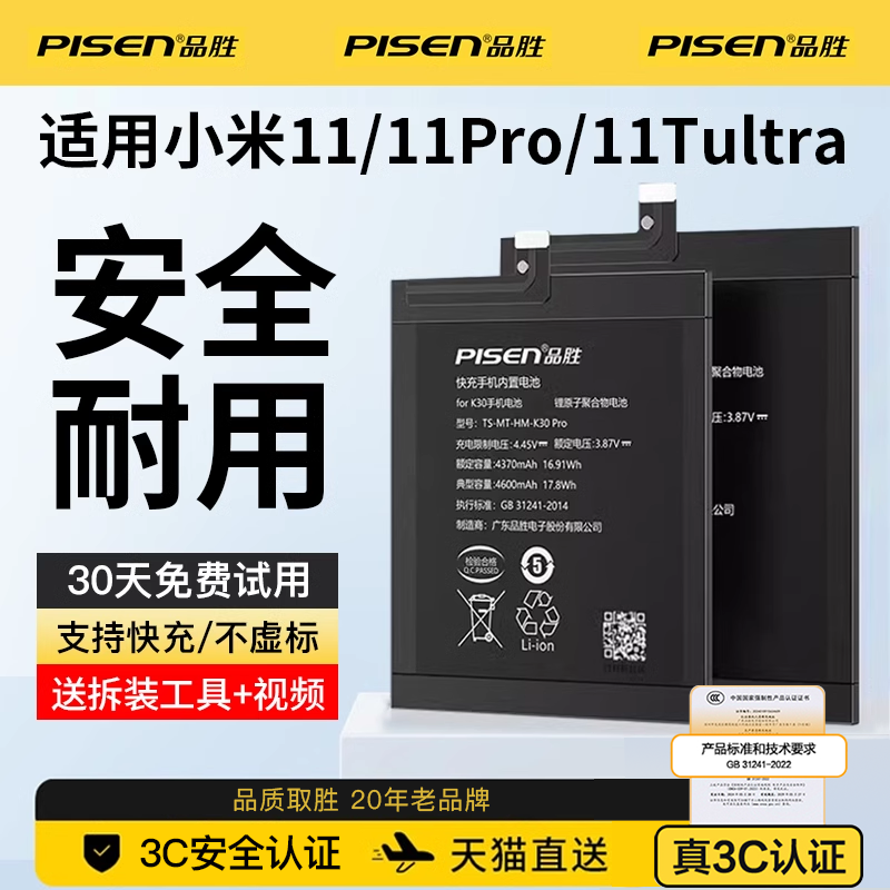 3C认证/品胜适用于小米11电池11pro正品BM4X大容量BP42更换11tpro青春版小米11Ultra至尊版