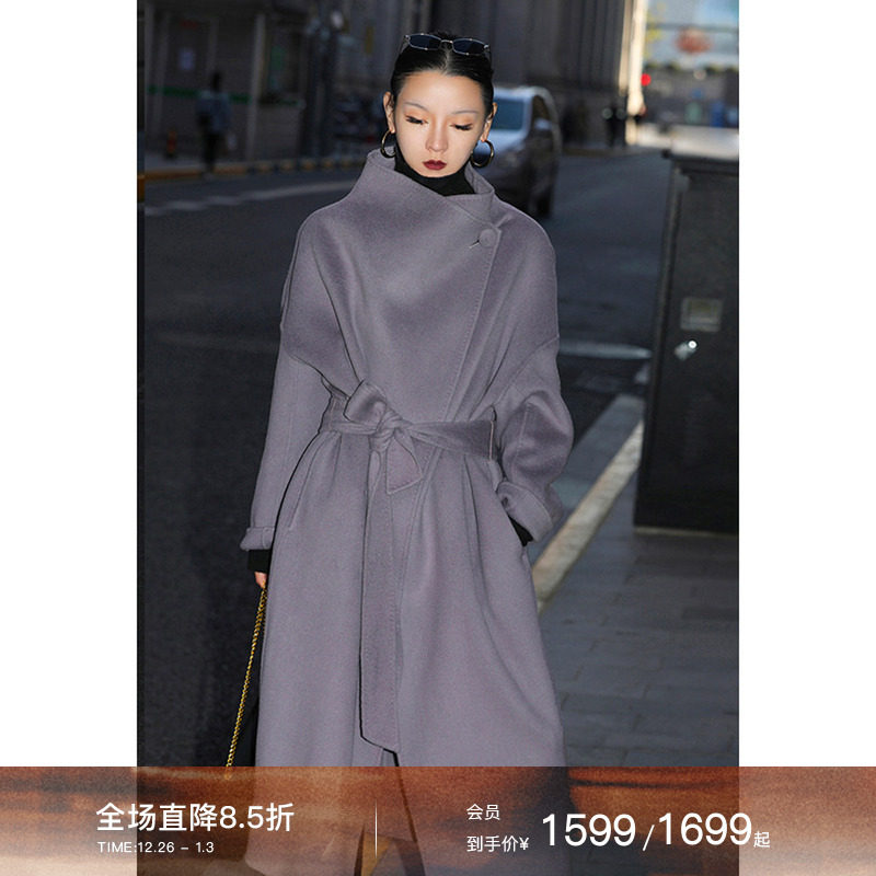 Mogas【博主同款】 定制时髦酷飒系带一粒扣羊毛双面毛呢大衣女冬