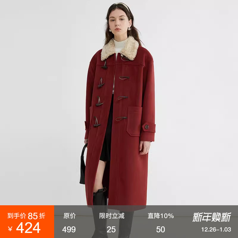秋水伊人红色双面呢大衣女羊毛国风新中式2025秋冬中长款毛呢外套
